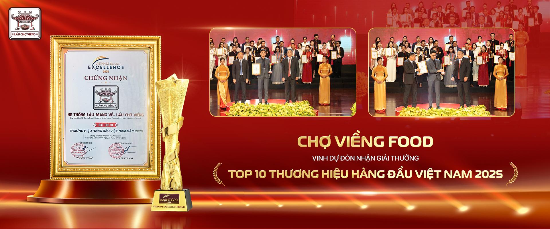 Lẩu Chợ Viềng vinh dự đón nhận giải thưởng: Top 10 Thương hiệu hàng đầu Việt Nam