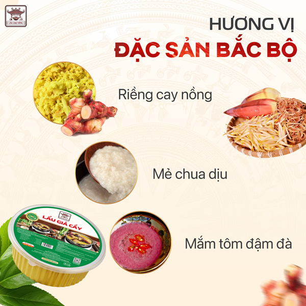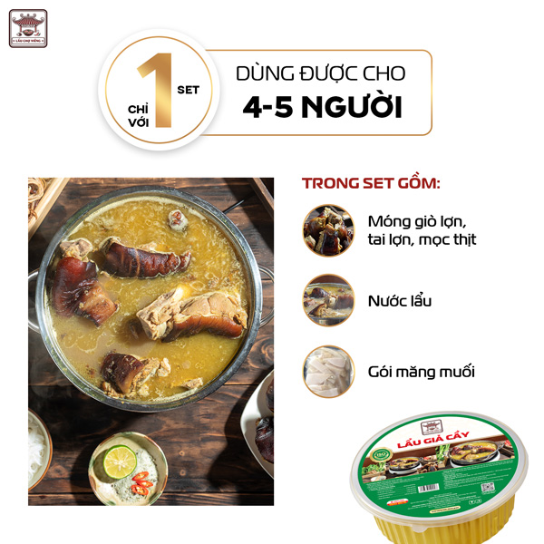 • Nước lẩu : Hầm từ 100% xương ống lợn trong nhiều giờ, phối hợp cùng riềng cay nồng, mẻ chua thanh, mắm tôm đậm đà – tạo nên hương vị giả cầy “chuẩn Bắc bộ”, khó quên.